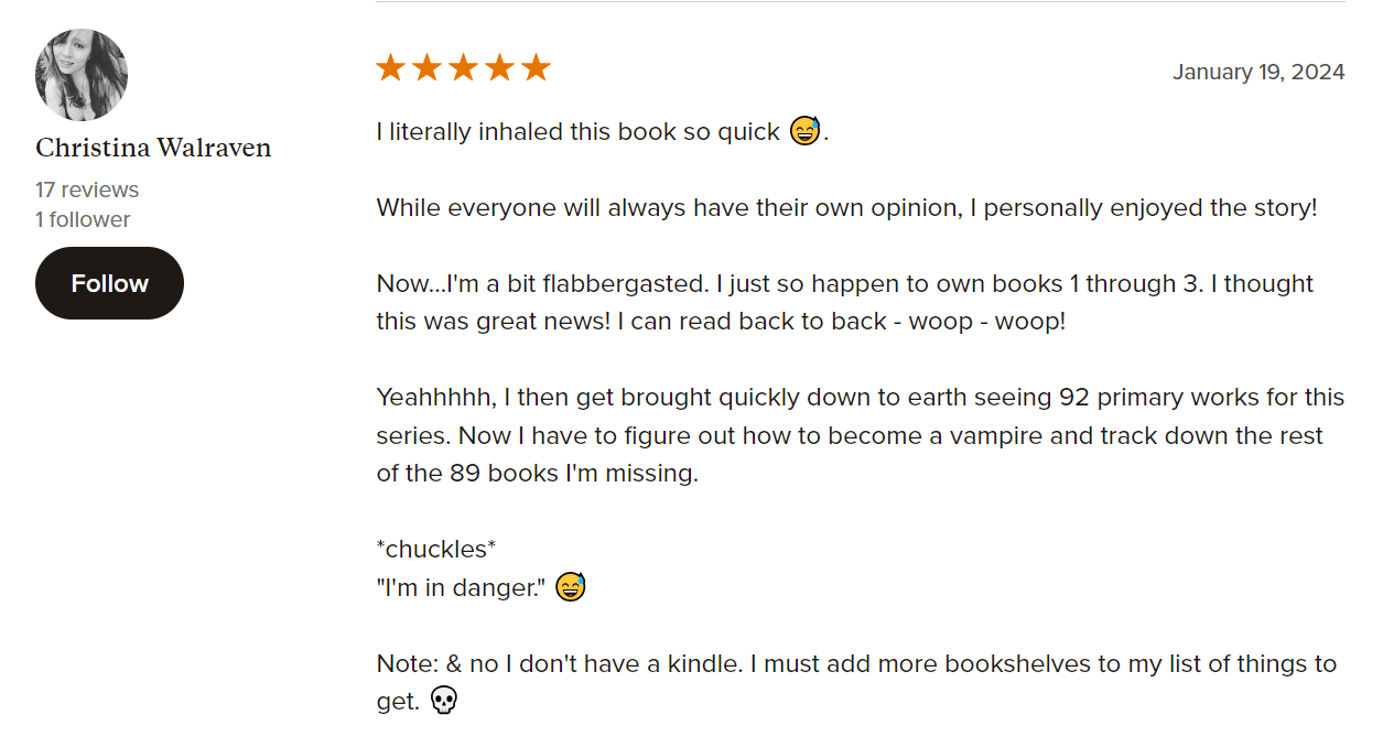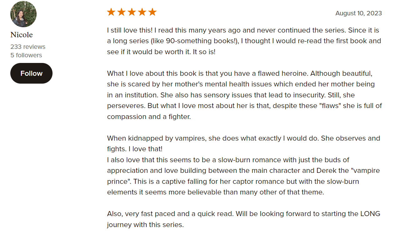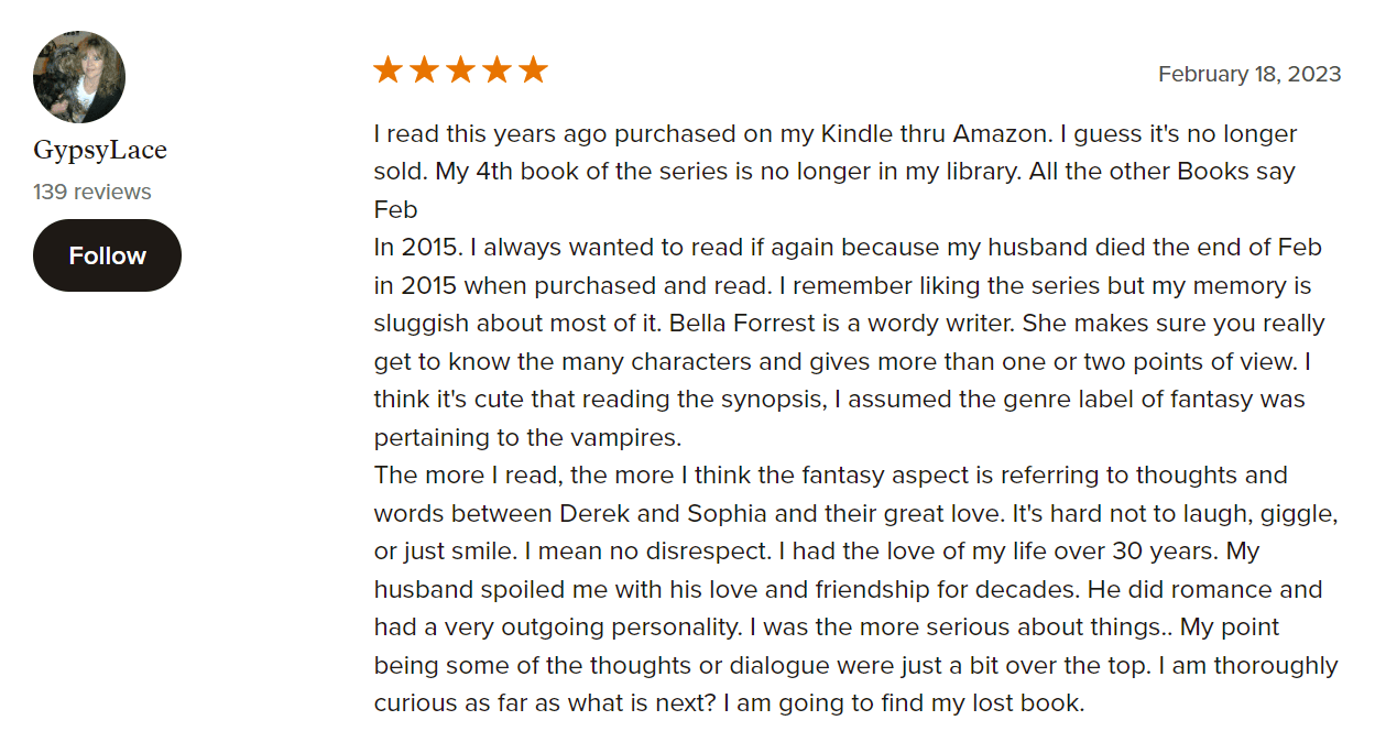 Bella Forrest is a bestselling author of fantasy, romance, action, and mystery novels with surprising twists. Her books have sold over 15 million copies since 2012, including the #1 Bestselling “A Shade of Vampire” series in the Vampire Romance, Paranormal & Fantasy genres. She has also written other popular series such as “Harley Merlin,” “Darklight,” and “The Gender Game,” with a total of 169 books.